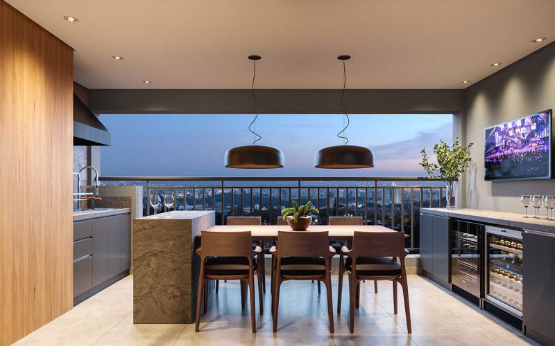 - Salões de festa e gourmet com pé direito duplo