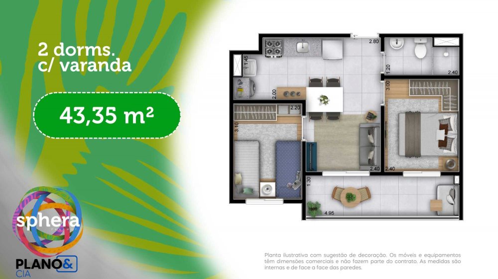 - Apartamento 2 Dorms. de 34,34m² a 49,05m²