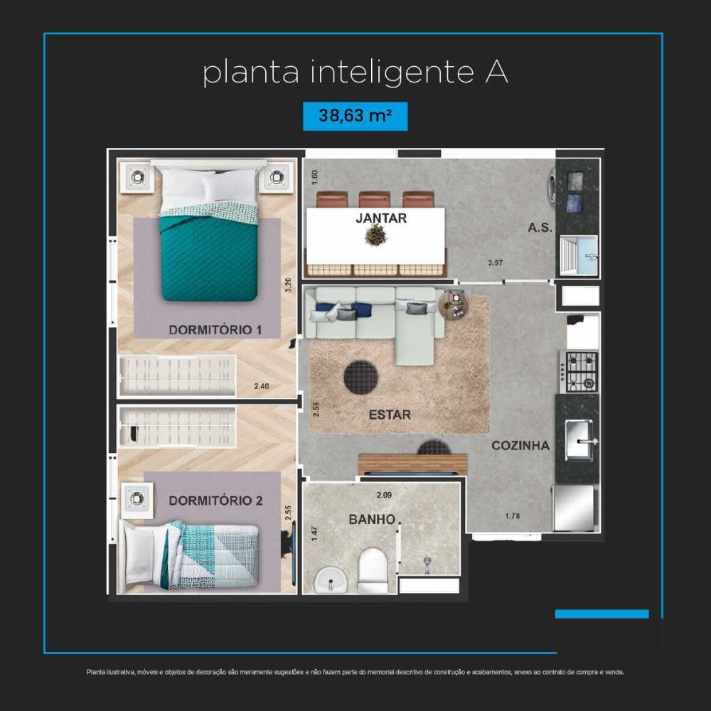 - 32m² e 38m²- 02 dormitórios, com varanda, sem vaga.