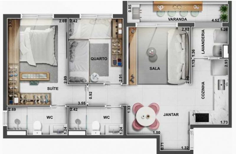 - Área Privativa: 59 m²