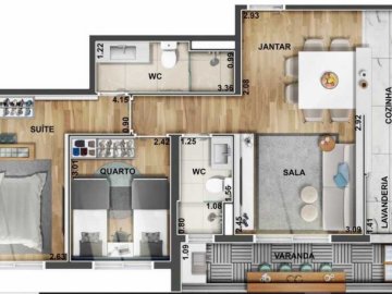 Opções de Plantas Com 43, 56, 59 e 69m², 1 ou 2 Dormitorios com Suíte e Varanda Gourmet