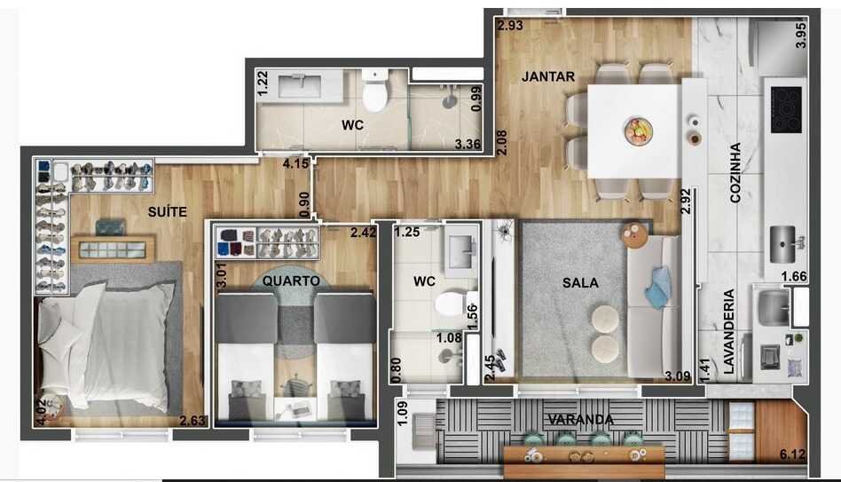 Opções de Plantas Com 43, 56, 59 e 69m², 1 ou 2 Dormitorios com Suíte e Varanda Gourmet