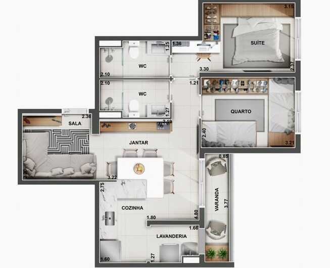 - 1 e 2 Dorms com Suíte e Terraço