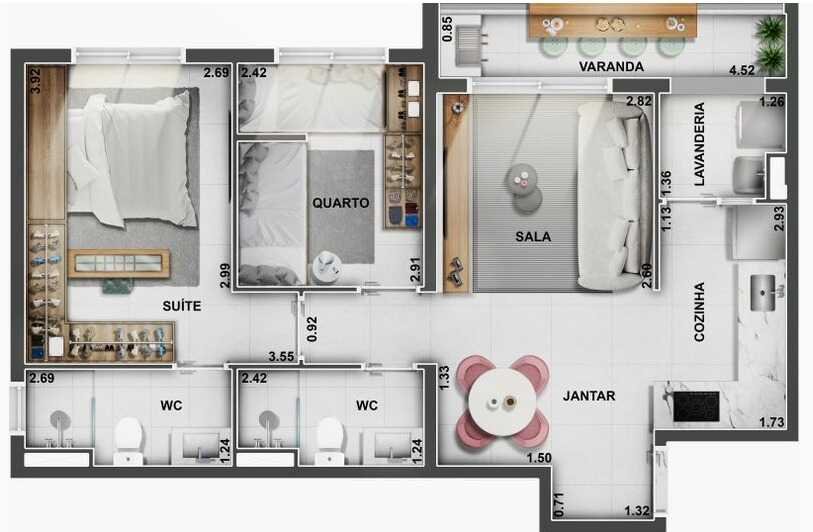 - Área Total: 69 m²
