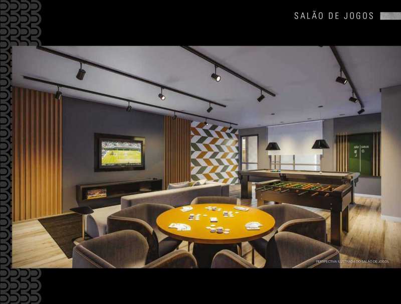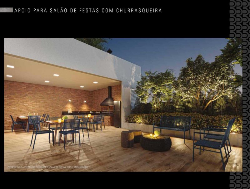 Salão de Festas, espaço gourmet, brinquedoteca, fitness, fitness externo, playground, piscina adulto, piscina infantil, solarium, sauna, churrasqueira, quadra recreativa, salão de jogos, pet place, bicicletario