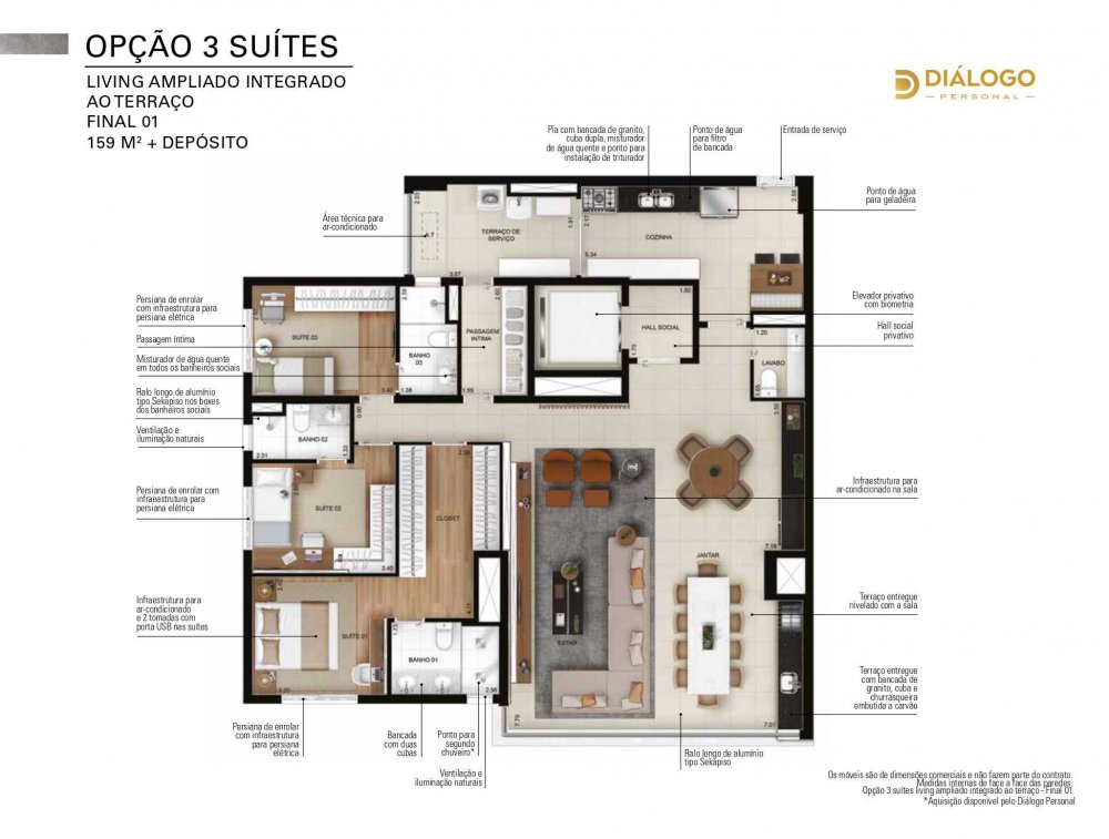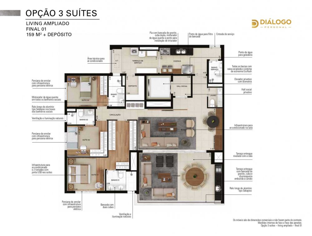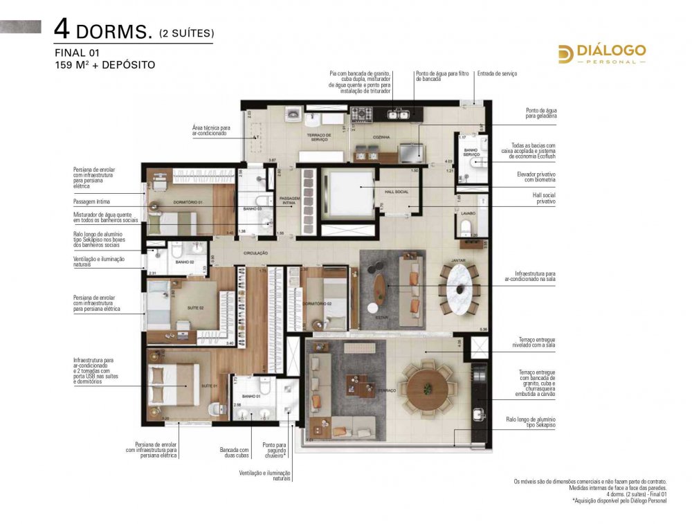 "Opções de 129 a 159m² / 2 a 4 Dormitorios / 2 ou 3 Suites"
