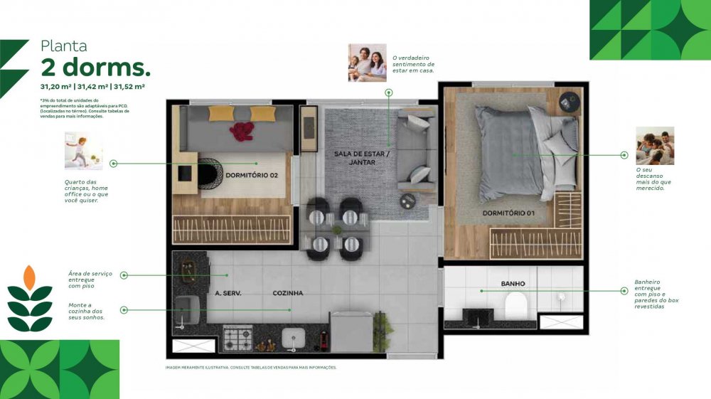 - Área Privativa: 33 m²