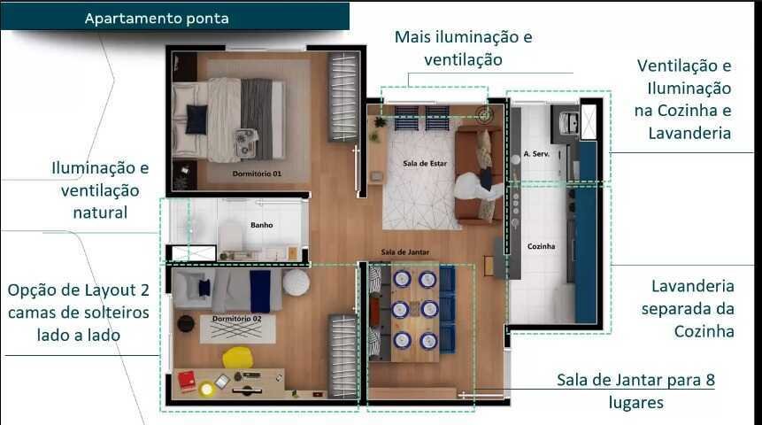 - Apartamentos com 42m² / 2 Dormitórios