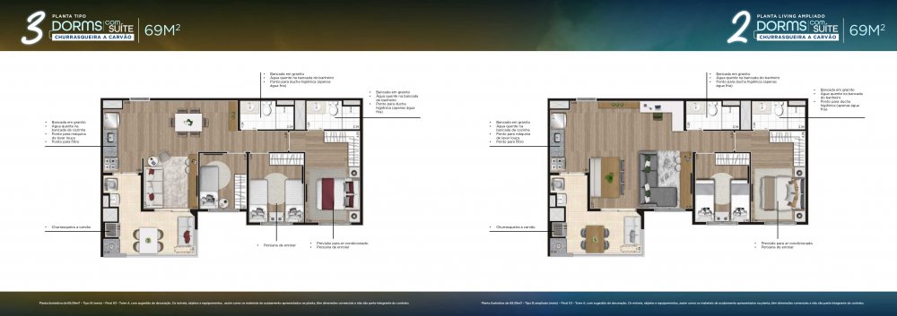 - 3 Dorms. com suíte - 69m2 - 40 unidades