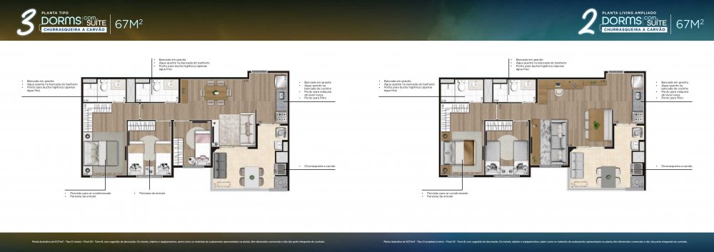 - 3 Dorms. com suíte - 67m2 - 97 unidades