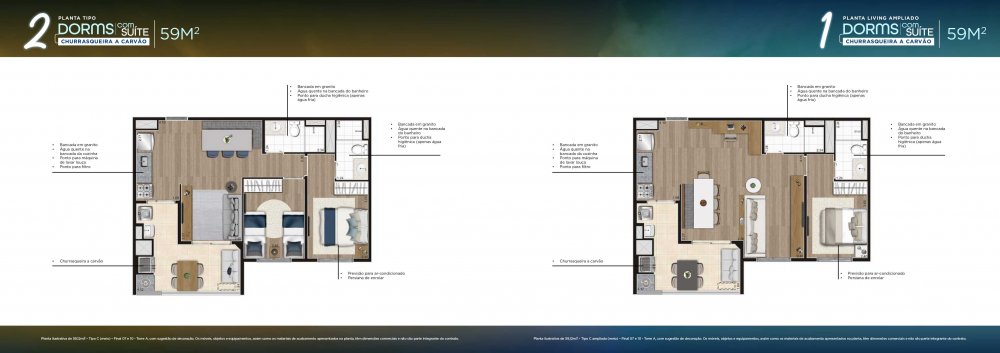 - 2 Dorms. com suíte - 59m2 - 40 unidades