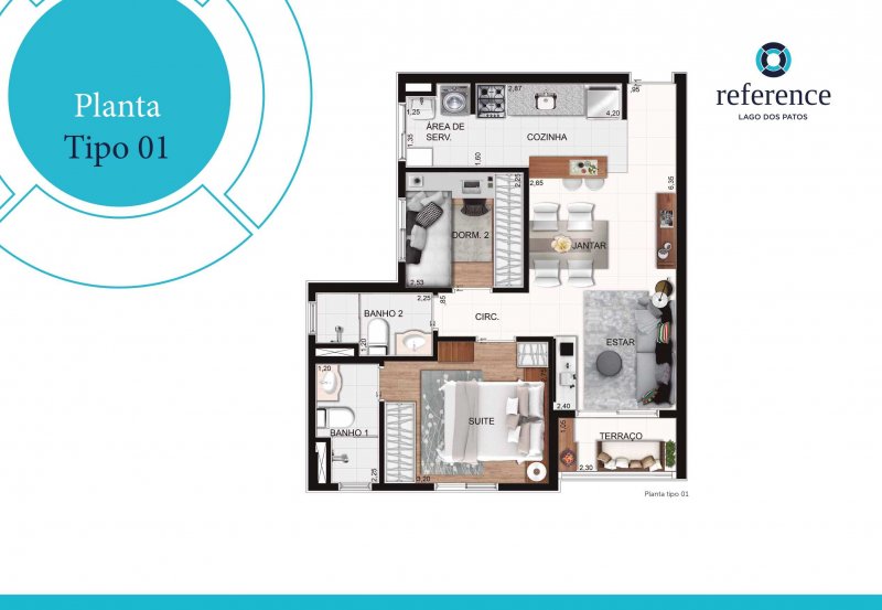 2 Dormitórios com Suíte 51,25m² - 1 vaga de garagem