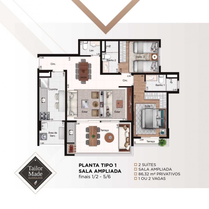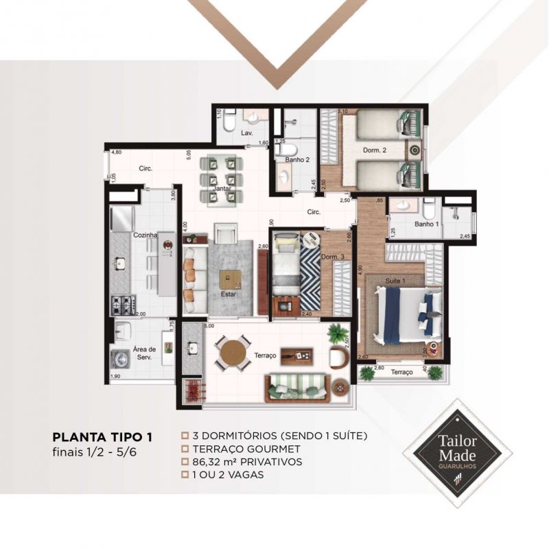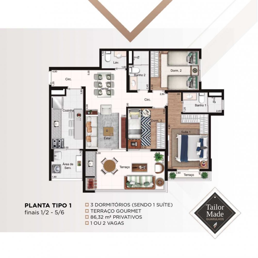 - 3 dormitórios 86 metros, suíte, varanda gourmet, varanda na suíte, 2 vagas de garagem.