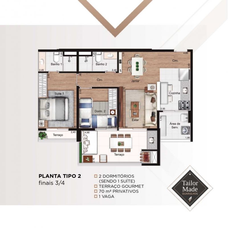 - Área Privativa: 70 m²