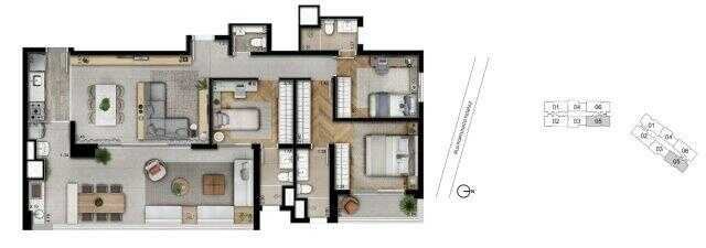 Tipos das unidades: 3 suítes e 3 dormitórios com 1 suíte