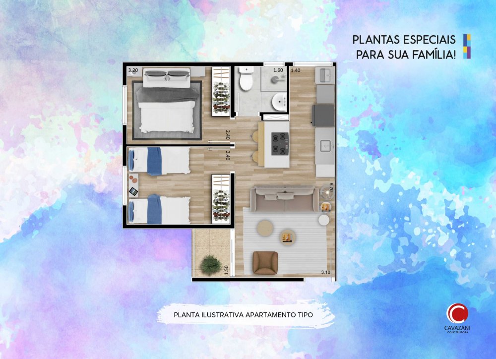 Apartamentos com 2 dormitórios, cozinha americana, sala ampla e ainda opções de cobertura dúplex, com uma área de lazer maravilhosa com bosque de árvores frutíferas e salão de festas. Enquadrado no programa Minha Casa Minha Vida 3, está localizado na Vila Nova Bonsucesso.
