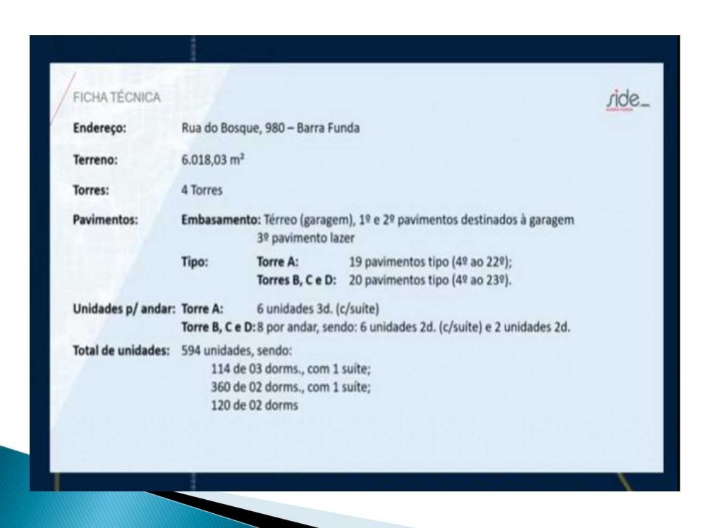 Apartamentos de 2 ou 3 quartos com suíte a 3 minutos do Terminal Barra Funda, e ao lado do Parque Barra Funda! O Side é um condomínio com lazer completo para toda a famíla em 4 torres e mais de 6.195m² de terreno. Venha conhecer e aproveite o lançamento! Informações Adicionais: