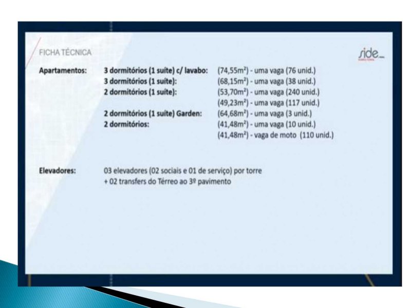 3 torre A = 19 pav. tipo + térreo e torres B, C e D = 20 pav. tipo + térreo