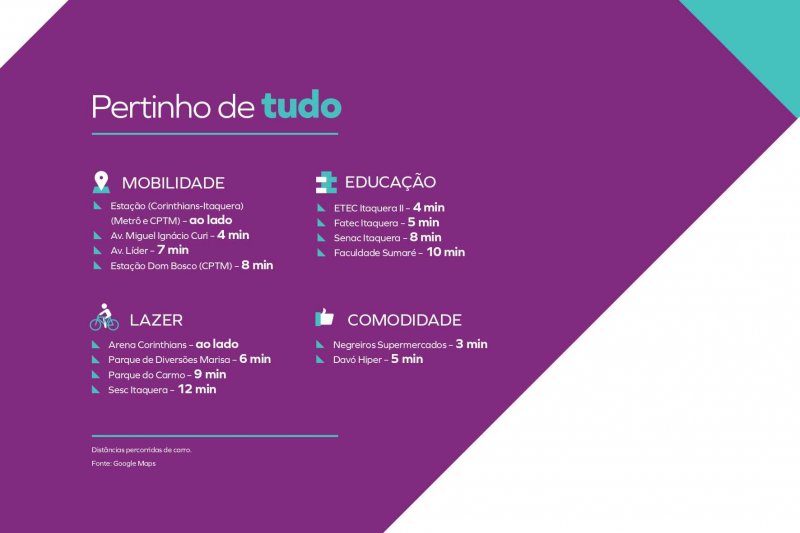 Localização muito boa, próximo da Avenida Itaquera e várias opções de comércio e serviços, e a poucos minutos da estação Corinthians - Itaquera do metrô. Condomínio com lazer completo, para todas as idades.