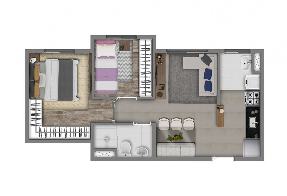 - Dormitórios2 Banheiros1