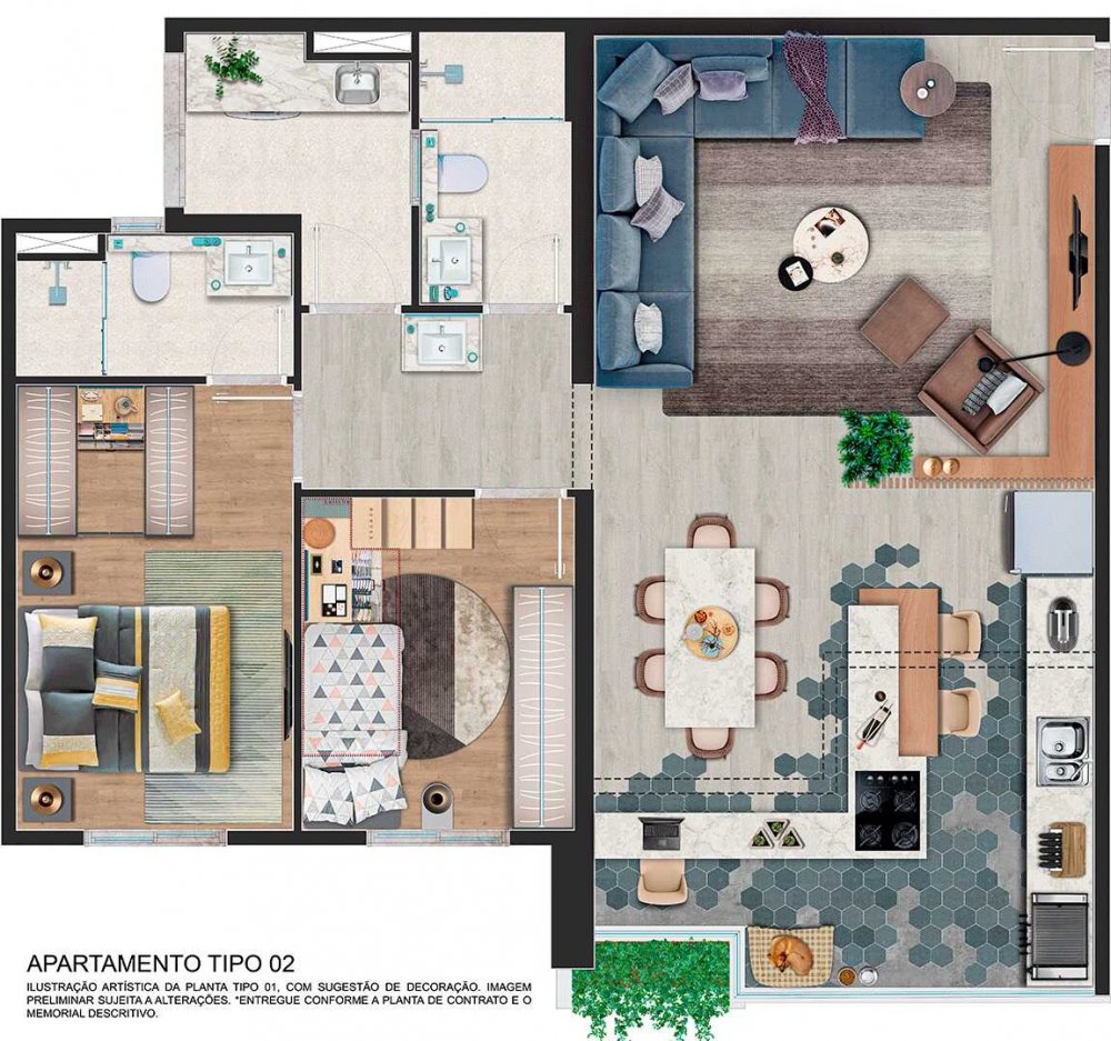 - Opções de 67,72m², 76,66m² e 83,68m²