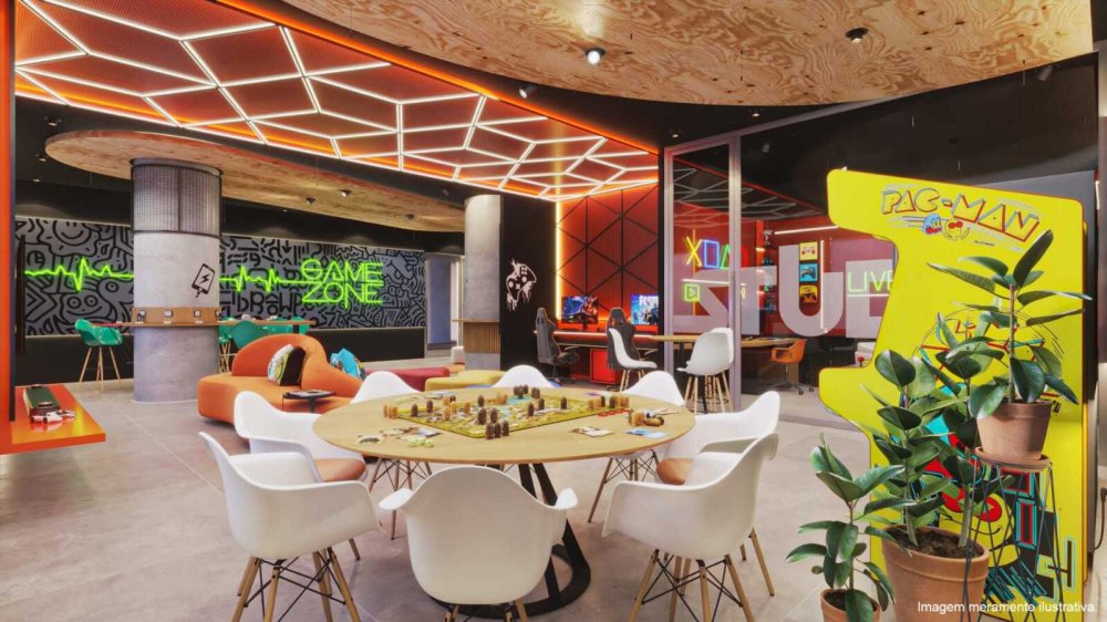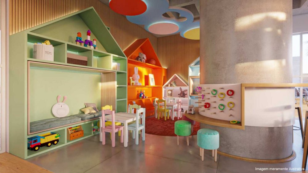 Área de carga e descarga, Piscina adulto e Infantil, Portaria, Áreas de convivência, Espaço família, Bicicletário, Quadra recreativa, Brinquedoteca, Piscina coberta, Salão de festas, Academia com varanda, Churrasqueira e Espaço pet.