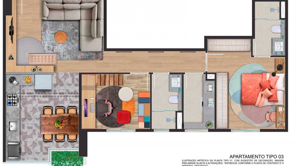- Apartamentos de 3 e 2 dormitórios com suíte, terraço com jardim e depósito privativo.