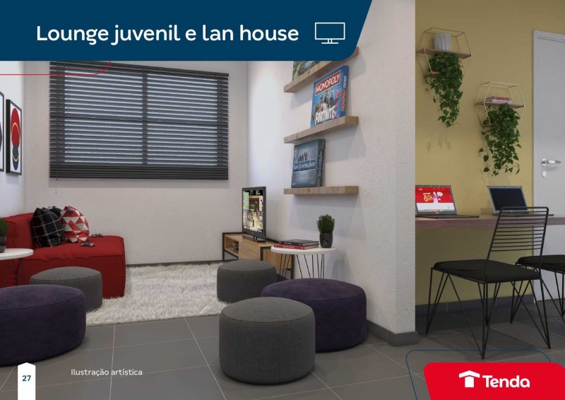 Bicicletário, Brinquedoteca, Churrasqueira Gourmet, Fitness Externo, Horta, Lan House, Loungue Juvenil, Praça Piquenique, Playground, Redário, Salão de festas.