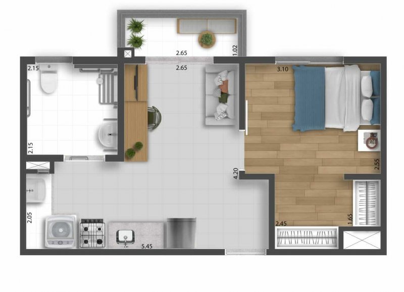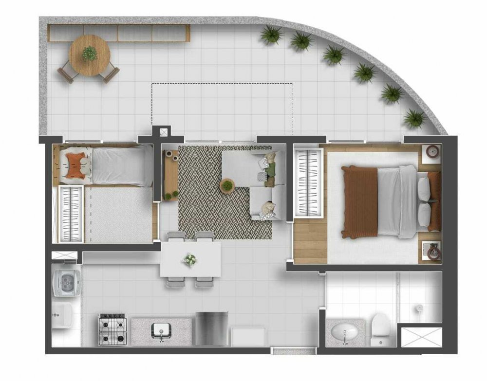 - Plantas de 1 e 2 dormitórios / Plantas 37,76 e 37,89 metros (com opção de planta PNE)