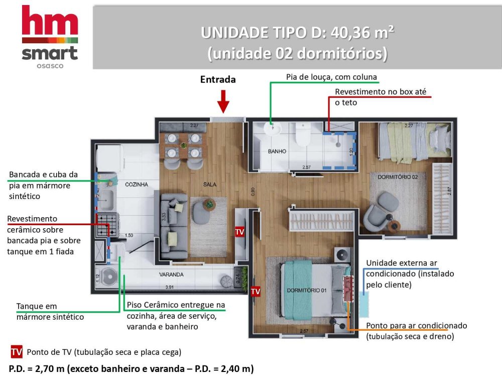 - Área Privativa: 40,45 m²