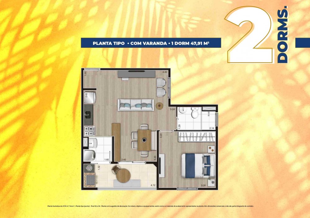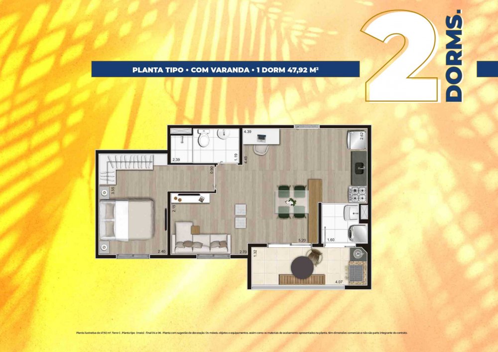 Plantas 47m², 49 m², 50m², 55m² 58m² e 60m² varanda 1 e 2 vagas.