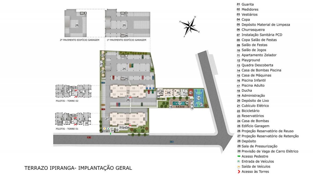 - Salão de Festas, Playground, Salão de Jogos, Churrasqueira, Quadra Poliesportiva, Piscinas Adulto e Infantil, Bicicletário.