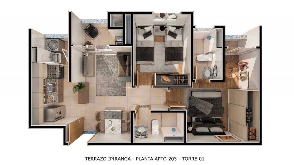 2 Dormitórios com Suíte Área total: 51,29 ou 51,71 ou 53,03m²*