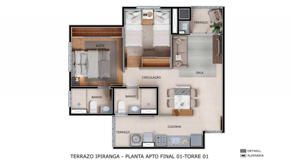 - Área Privativa: 47 m²