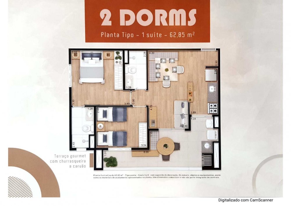 Apartamentos de 62 e 64m² com 2 Quartos (1 suíte) e Churrasqueira na Varanda