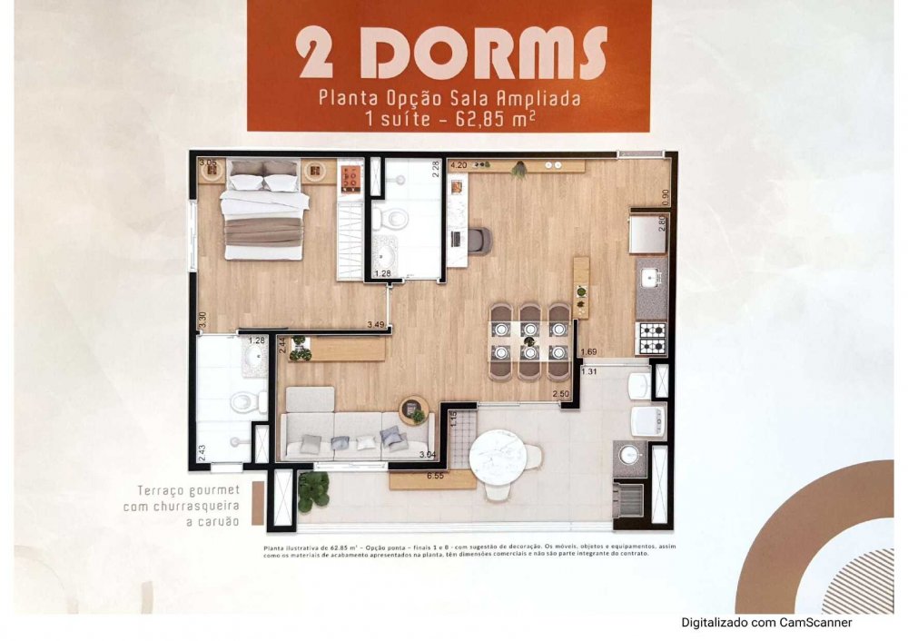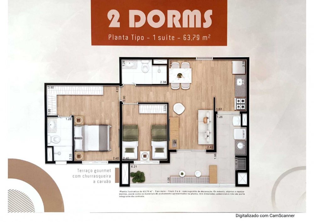 - Área Total: 64 m²