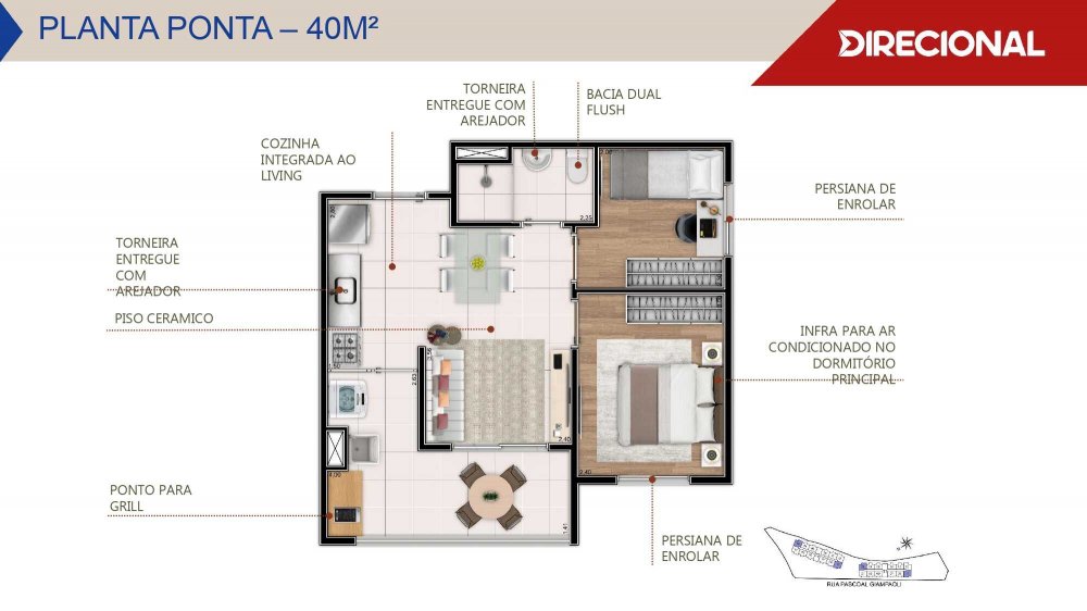- Área Privativa: 40 m²
