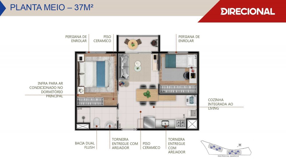 - Metragem: 37m² e 40m²