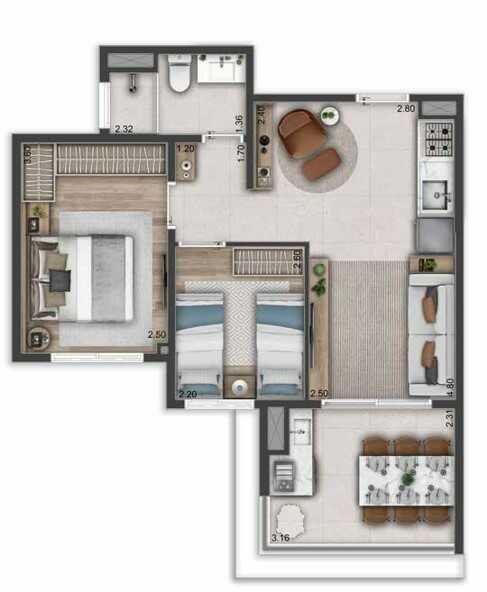 - Área Privativa: 50 m²
