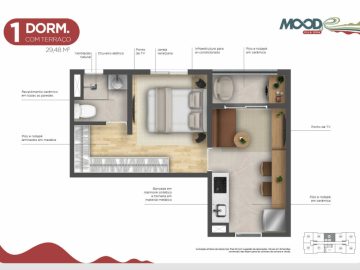 - 29m²- 01 dormitório, com varanda, sem vaga.
