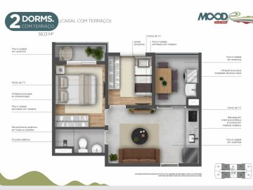 Lazer Completo Mood Vila Ema: Bicicletário , Brinquedoteca , Churrasqueira , Coworking , Espaço Cinema , Espaço Delivery , Fire place , Fitness , Lavanderia , Lounge , Pet place , Piscina Adulto , Piscina Infantil , Playbaby , Playground , Salão de festas , Salão de Jogos