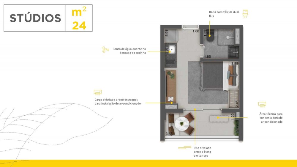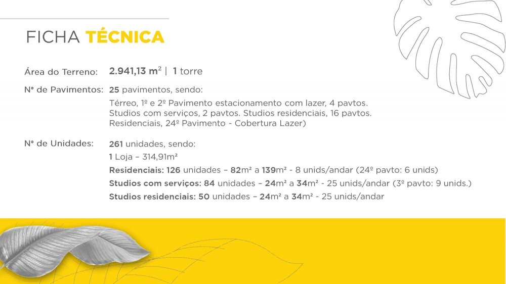 Studios com serviços: 84 unidades - 24m² a 34m²