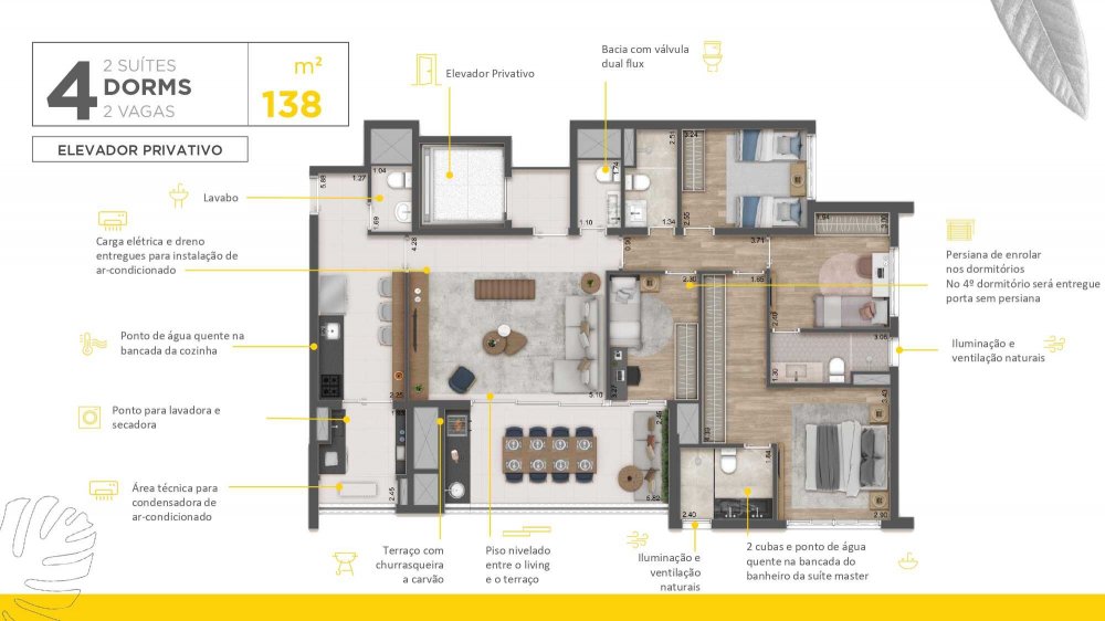 138m² - 4 dorms (3 suítes) - 2 vagas