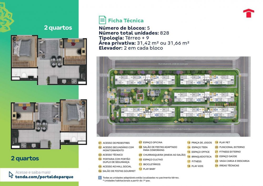 TENDA PORTAL DO PARQUE / Apartamentos 2 Dormitórios Com Amplo Lazer