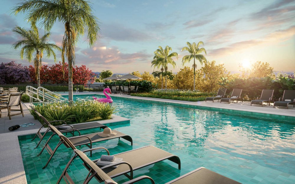 Com opções de Apartamentos de 1 e 2 Dormitórios, plantas de 34, 38 e 41 m², terraço e Lazer Diferenciado com Piscina.