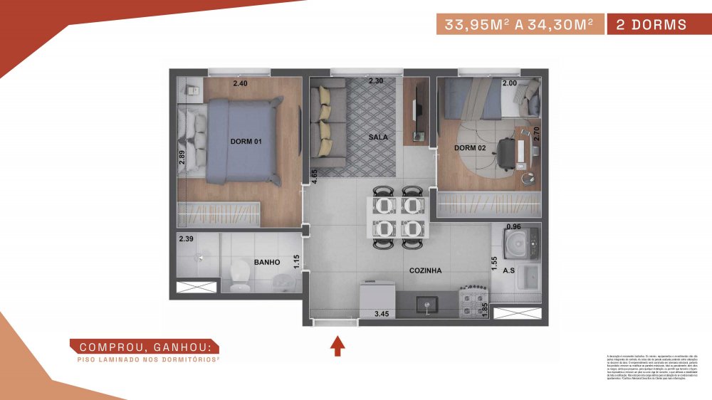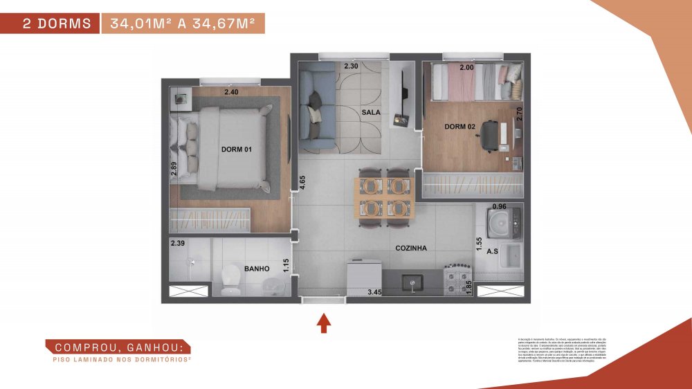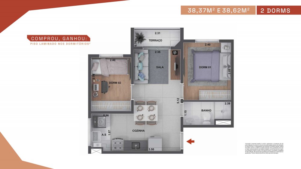 Com opções de Apartamentos de 1 e 2 Dormitórios, plantas de 34, 38 e 41 m², terraço e Lazer Diferenciado com Piscina.
