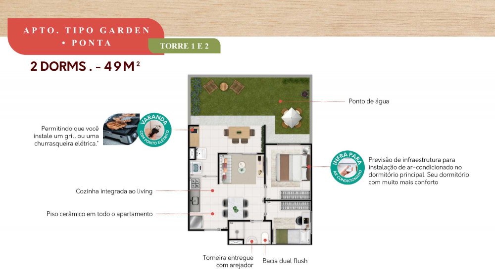 - Número de Apartamentos Por Andar: TORRE 1 e 2: 12 | TORRE 3: 8 Unidades;