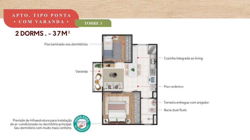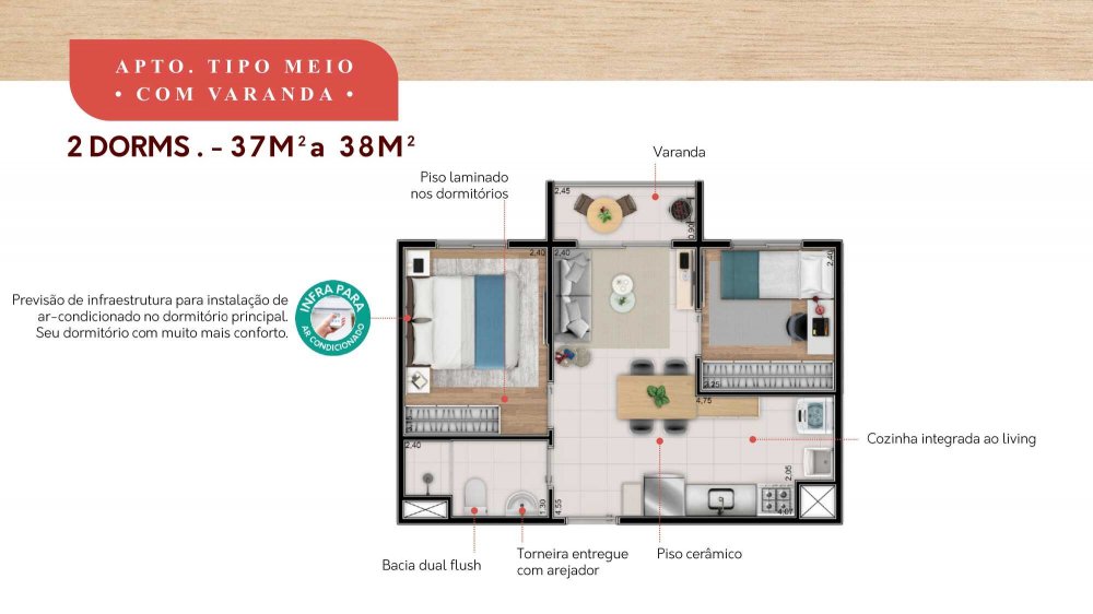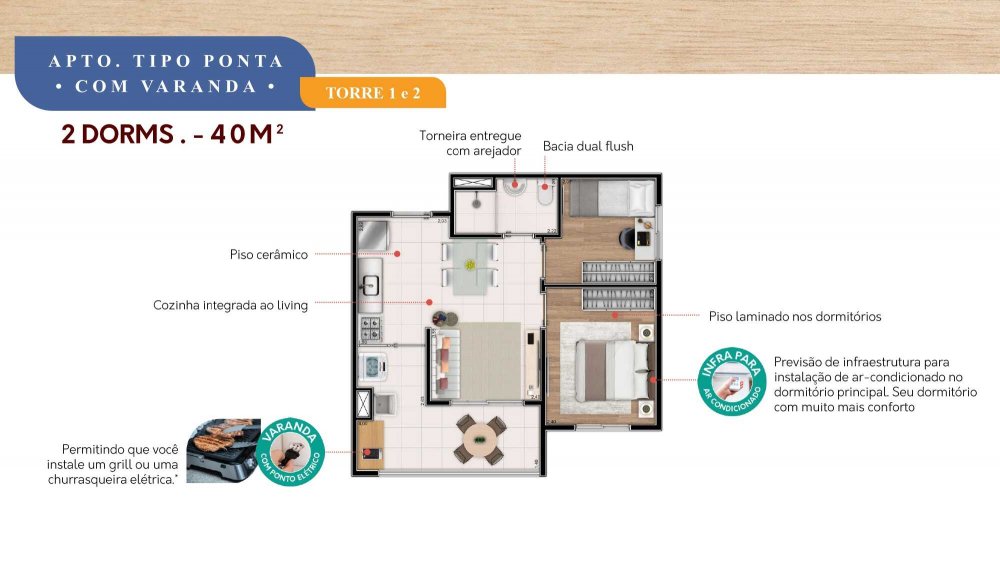 Lançamento Com Opções de 2 Dorms 37m² à 40m² C/ Varanda