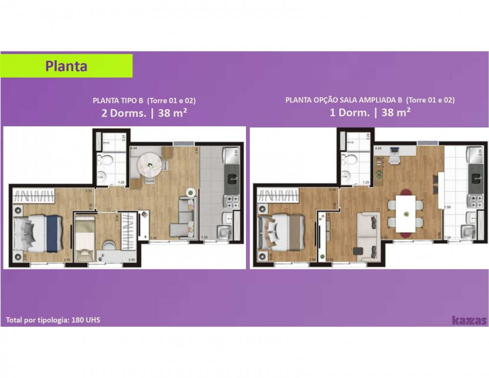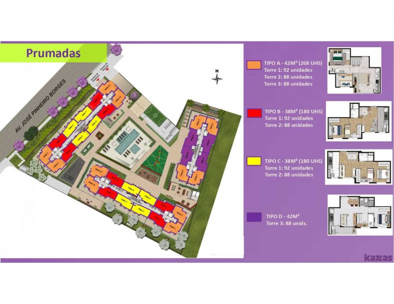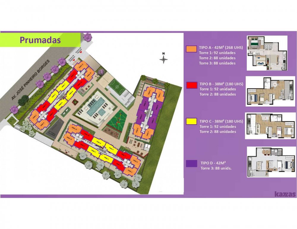 - Área Privativa dos Aptos: 38 a 42m2