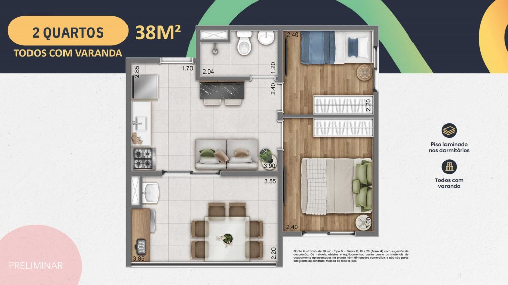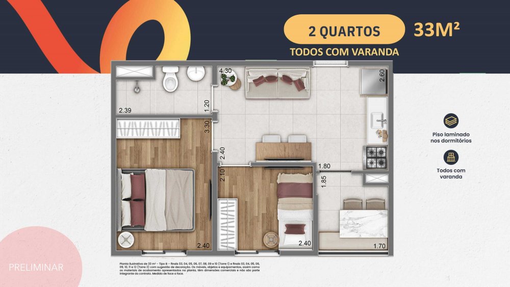 - Metragens: 29 m² a 38 m²